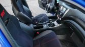 The seats are trimmed in black upholstery with Alcantara inserts, red stitching, and STi embroidery. Amenities include automatic climate control, heated front seats, cruise control, keyless entry, a Pioneer multimedia stereo, and power windows, locks, and mirrors. SI-Drive controls on the center console provide manual adjustment of the powertrain modes and center differential.