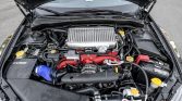 The turbocharged and intercooled 2.5-liter DOHC flat-four sends power to all four wheels through a six-speed manual transmission paired with front and rear limited-slip differentials. The engine was overhauled and modified in 2021 with Manley pistons and connecting rods, King bearings, ARP head studs, a Tomei oil baffle, and a Killer B oil pan and pick-up. The seller notes that the engine is still in its break-in phase and is not ready for track use, and that the process will need to be completed by the new owner. A Cobb Accessport is included in the sale, and additional modifications include the following: