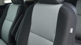 The cabin features front bucket seats and a rear bench upholstered in two-tone black and gray water-resistant fabric. Matte silver trim accents the dashboard. Other equipment includes an auto-dimming mirror, a CD stereo, air conditioning, and an Ultimate Edition dash plaque.