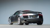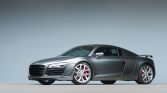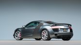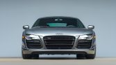 This 2015 Audi R8 coupe is finished in Daytona Gray Pearl over black Nappa leather and is powered by a 4.2-liter V8 paired with a seven-speed S-tronic dual-clutch automatic transaxle and a Quattro all-wheel-drive system. Additional equipment includes 19” Y-design wheels, magnetic-ride adaptive suspension, Carbon Sigma sideblades and interior inlays, a carbon-fiber rear wing and front canards, an aftermarket exhaust system, Audi MMI Navigation Plus, a Bang & Olufsen sound system, and heated front seats.