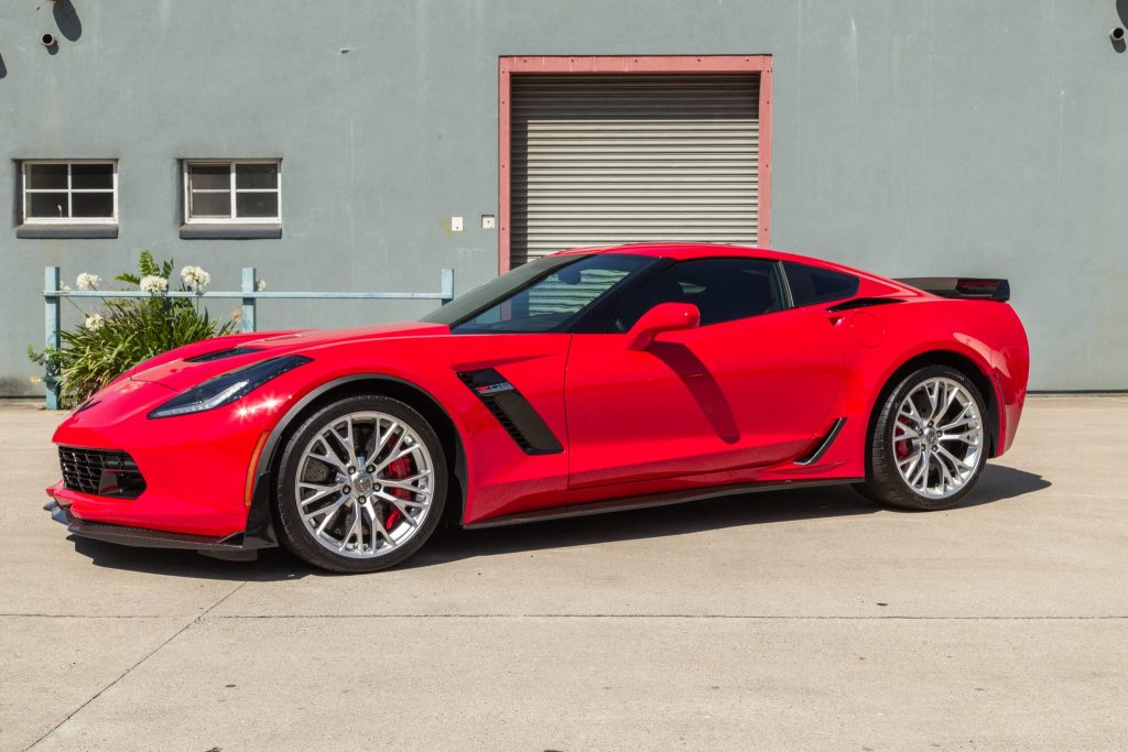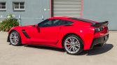 The car is finished in Torch Red and features aerodynamic enhancements specified with the Z07 package including a carbon-fiber front splitter and an adjustable rear spoiler. Additional equipment includes a carbon-fiber hood and removable roof panel, xenon headlights, heated mirrors, and quad exhaust outlets. Paint-protection film was applied in 2015, along with window tint. In 2016, a ceramic coating was applied to the exterior.