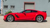 Pearl Nickel aluminum wheels are mounted with 285/30-19 front and 335/25-20 rear Michelin Pilot Super Sport tires. The car is equipped with Magnetic Ride Control, and the Z07 package added upgraded suspension components as well as Brembo ceramic brakes with red calipers. A set of Michelin Pilot Sport Cup tires are provided with the car.
