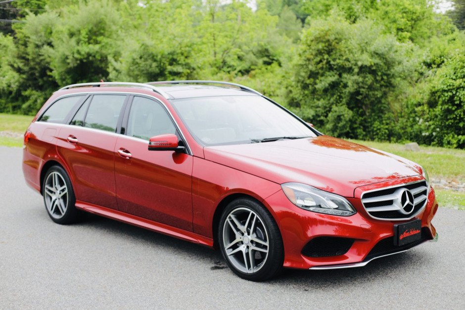 This 2015 Mercedes-Benz E350 4MATI is finished in Cardinal Red over Silk Beige Nappa leather and is powered by a 3.5-liter V6 driving all four wheels through a seven-speed automatic transmission. Additional equipment includes the Sport Package, the Premium Package, COMAND with navigation, Harman Kardon audio, Keyless Go, a panoramic sunroof, dual-zone automatic climate control, third-row seating, rear window blinds, heated and power-adjustable front seats, and 18″ AMG wheels.