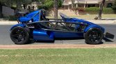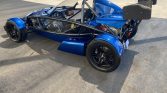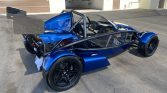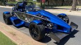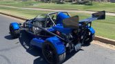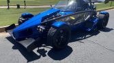This 2016 Ariel Atom 3S was built by TMI AutoTech in South Boston, Virginia, under license from Ariel Motor Company. The bodywork is finished in blue, and power is from a turbocharged 2.4-liter inline-four paired with a six-speed manual transaxle and a limited-slip differential. Equipment includes front and rear carbon-fiber wings, full exterior lighting, a roll bar, staggered-diameter wheels, an adjustable suspension, black-upholstered fiberglass seats with racing harnesses, a brake-bias adjuster, and a quick-release steering wheel.