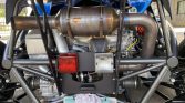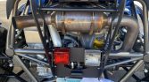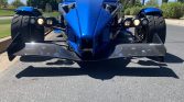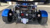 The car features Laguna Blue-finished fenders and body panels as well as a powder-coated tubular steel chassis and carbon-fiber front and rear wings. Equipment includes full exterior lighting, a windshield wiper, a roll bar, a front tow hook, and a single exhaust outlet. The seller notes paint chips as well as cracked paint on the right-rear fender.
