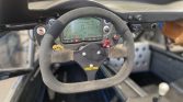 The quick-release MOMO steering wheel is wrapped in suede and frames a backlit DASH2 Pro display, inset shift-timing lights, and a brake-bias adjuster. The digital odometer indicates 10k miles.