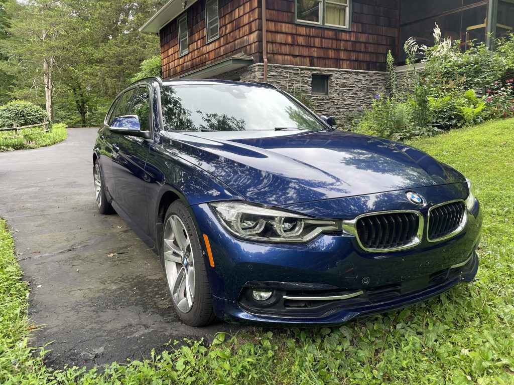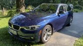 This 2016 BMW 328i xDrive Sports Wagon is a Sport Line example powered by a turbocharged 2.0-liter inline-four that drives all four wheels through an eight-speed automatic transmission. The car is equipped with a Dinan exhaust system and engine management software, and it is finished in Mediterranean Blue Metallic over black Dakota leather with red accents. Features include the Cold Weather, Driver Assistance, Premium, and Technology packages in addition to 18″ Style 397 alloy wheels, a panoramic sunroof, adaptive LED headlights, and fog lights. The interior is fitted with heated power-adjustable front sport seats, heated rear seats, and a heated steering wheel along with a Harman Kardon sound system, a rearview camera, adaptive cruise control, Comfort Access keyless entry, and iDrive infotainment with navigation.