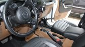 Satin-finished 17″ AEV wheels wear 35×12.5″ BFGoodrich Mud-Terrain T/A KM2 tires. A matching spare wheel is mounted on a swing-out rear carrier. The suspension features an AEV 2.5″ suspension lift, and braking is handled by four-wheel discs with ABS. An AEV front skid plate and differential covers are fitted, and the front brake pads are said to have been replaced in preparation for the sale.