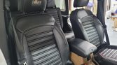 The cabin features heated front seats upholstered in black leather with AEV 20th Anniversary embroidered headrests, while tan panels trim the lower dashboard, door panels, and center console. Equipment includes air conditioning, remote start, cruise control, the Connectivity Group, and all-weather floor mats.