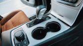 The heated multifunction steering wheel is mounted on a power tilting and telescoping column and fronts paddle shifters, a 200-mph speedometer, a central tachometer, and gauges for coolant temperature and fuel level. The driver is aided by lane-departure warning, trailer-sway control, blind-spot monitoring, parking sensors, and adaptive cruise control as well as parallel and perpendicular park assist. The digital odometer indicates under 36k miles.