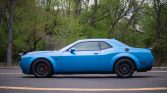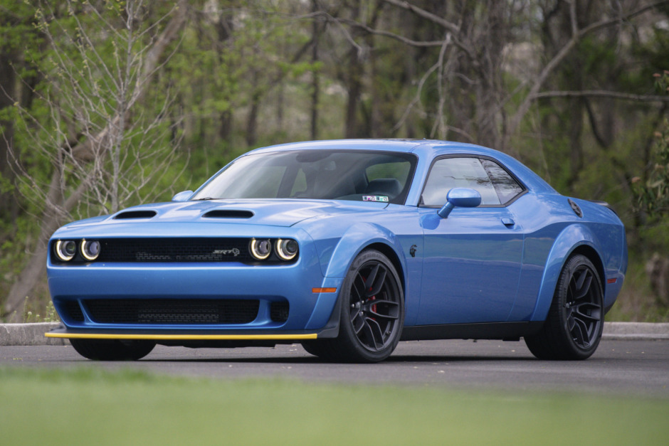 This Dodge Challenger SRT Hellcat Redeye is finished in B5 Blue over black Laguna leather and is powered by a supercharged 6.2-liter V8 paired with an eight-speed TorqueFlite automatic transmission. Features include 20″ wheels, the Technology and Driver Convenience groups, and the Plus, Widebody, Lightweight, and Customer Preferred packages, as well as a sunroof, an SRT Performance spoiler, ventilated front seats, a Uconnect infotainment system, and a Harman Kardon audio system. The car was first sold by Coon Rapids Chrysler Dodge Jeep Ram in Minneapolis, Minnesota and was acquired by the current owner in April 2019.