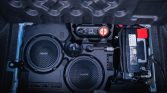 The Widebody Package adds Devil’s Rim 20″ forged wheels, which are mounted with 305/35 Pirelli P Zero tires at all four corners. Braking is handled by six-piston front and four-piston rear Brembo calipers with slotted discs, and the suspension features adaptive damping.