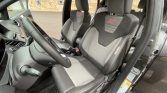 Optional heated Recaro sport seats are trimmed in Smoke Storm partial leather with gray inserts along with a matching rear seat. Additional equipment includes a rear-view camera, a Sony Sync 3 audio system with a 6.5″ touchscreen, a COBB ALessport tuner, automatic climate control, keyless entry, multi-color ambient lighting, and brushed-aluminum sill plates bearing the ST logo.