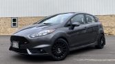This 2019 Ford Fiesta ST was purchased new by the seller from Middleton Ford of Middleton, Wisconsin, and has 8k miles. The car is finished in Magnetic gray over Smoke Storm partial leather upholstery, and it is powered by a turbocharged 1.6-liter EcoBoost inline-four paired with a six-speed manual transaxle with Torque Vectoring Control. Equipment includes aftermarket 17″ wheels, fog lights, heated Recaro sport seats, a Sony Sync 3 stereo system, an engine block heater, a Mountune induction kit, and a COBB ALessport tuner.