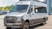 This 2022 Airstream Interstate 24x is an RV built on a 2020 Mercedes-Benz Sprinter 3500XD 4X4 chassis and powered by a 3.0-liter turbodiesel V6 linked with a seven-speed automatic transmission and a dual-range transfer case. The van is finished in silver over black, silver, and gray upholstery, and details include swiveling front seats, a kitchenette, a wet bathroom, and a configurable sleeping area. Additional equipment includes an Advanced Power System, a Cummins generator, a power-operated awning, a roof-mounted…