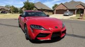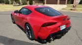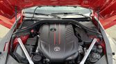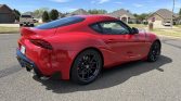 The 19″ forged aluminum wheels are wrapped in staggered-width Michelin Pilot Super Sport tires. The car rides on an Adaptive Variable Suspension (AVS) system and stopping power is provided by four-wheel disc brakes with Supra-branded four-piston Brembo front calipers.
