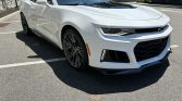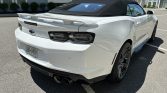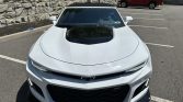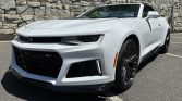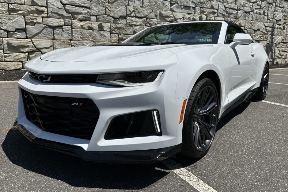 This 2024 Chevrolet Camaro ZL1 convertible is finished in Summit White over Jet Black leather and microsuede and is powered by a supercharged 6.2-liter V8 paired with a six-speed manual transmission. Features include a limited-slip differential, a black convertible top, 20″ forged aluminum wheels, a dual-mode exhaust system, LED headlights, a Bose sound system, and heated and ventilated power-adjustable Recaro front seats.