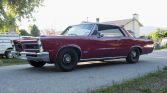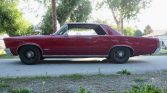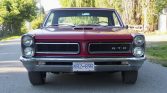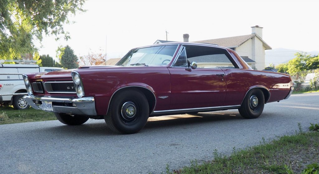 This 1965 Pontiac GTO hardtop is finished Matador Red over black vinyl and powered by a 389ci V8 paired with an M21 four-speed manual transmission. The car resided in Seattle before being imported to Canada in 1988 and was later acquired by the current owner in 2016 and refurbished. Features include Tri-Power induction, the Rally Gauge package, dual exhaust, a dual-speed wiper motor, and 14″ steel wheels. Work since 2018 has consisted of replacing the alternator, water pump, fuel pump, engine bay wiring harness, clutch Z-bar, hood hinges, starter, master brake cylinder, wheel brake cylinders, brake shoes, brake lines, fuel lines, and fuel tank.